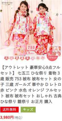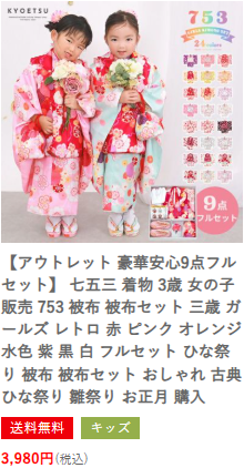 【PR】きものKYOETSU > 七五三特集を見る \\ イチオシ商品 // 七五三 女の子 3歳 着物 七五三 男の子 5歳 着物 七五三 女の子 7歳 着物 >詳細はこちら 【豪華9点フルセット】 七五三 着物 3歳 レトロ レンタルよりずっとお得!かわいいデザインを取り揃えた被布着物の9点フルセットセット内容(1)被布 (2)着物 (3)長襦袢 (4)伊達衿(5)巾着(着物と同柄)(6)髪飾り(パッチン留めタイプ)(7)草履(着物と同柄)(8)白足袋(こはぜなし・白無地)(9)腰紐(色はスタッフおまかせ)・サイズ 90~100cm・着付け説明書付き(動画あり) >詳細はこちら [豪華9点フルセット]七五三 着物 3歳 女の子被布セット くすみ 肩上げ・腰上げ済みなので、届いてすぐに着用可能 >詳細はこちら 七五三 3歳 女の子簡単着付け セパレート着物 洋服感覚でサッと着られる!セット内容(1)被布 (2)着物 (3)伊達衿(縫い付け済み)(4)巾着 >詳細はこちら >詳細はこちら >七五三3歳着物一覧を見る >詳細はこちら [豪華12点フルセット] 七五三 着物 男の子 5歳 袴 着付けに必要なものはすべて揃っているおしゃれな羽織袴セットお祝いシーンにぴったりな豪華な大柄を集めた男の子の羽織袴 >詳細はこちら >詳細はこちら >七五三5歳着物一覧を見る >詳細はこちら [豪華15点フルセット]七五三 7歳 着物 女の子 セット内容(1)着物 (2)重ね襟 (3)結び帯(柄お任せ)(4)しごき※生産時期により房の形状の違い、色味の差があります。(5)帯揚げ (6)帯締め(柄お任せ)(7)はこせこ(柄お任せ)(8)草履(柄お任せ)(9)バッグ(柄お任せ)(10)ビラ簪 (11)末広 (12)襦袢(13)白足袋(こはぜなし・白無地)(14)腰紐 (15)腰紐 >詳細はこちら >詳細はこちら >七五三7歳着物一覧を見る > カテゴリから探す 誰もが気軽に特別な体験を楽しむことができる、京都にある和装ブランドです。幅広い年代に対応しており、家族みんなで利用できるのが魅力的です。また、お手頃価格なので和装初心者の方でも気軽に和装を楽しめます。お宮参り・七五三・成人式・卒業袴などの行事、浴衣や甚平・訪問着まで対応していて、多くのリピーターあり◎最近は ✓着付け不要の“セパレート着物” ✓ 自宅で洗える“カジュアル着物”✓ ネットでフルセット揃う“お得” ✓レンタルより安い!買って手元に残せるなど、もっと手軽でオシャレな着物の楽しみ方が増えています。 誰もが気軽に特別な体験を楽しむことができる、京都にある和装ブランドです。幅広い年代に対応しており、家族みんなで利用できるのが魅力的です。また、お手頃価格なので和装初心者の方でも気軽に和装を楽しめます。お宮参り・七五三・成人式・卒業袴などの行事、浴衣や甚平・訪問着まで対応していて、多くのリピーターあり◎最近は ✓着付け不要の“セパレート着物” ✓ 自宅で洗える“カジュアル着物”✓ ネットでフルセット揃う“お得” ✓レンタルより安い!買って手元に残せるなど、もっと手軽でオシャレな着物の楽しみ方が増えています。 \\ キャンペーン // 今のライフスタイルに合わせた「ちょうどいい着物」あなたもきっと見つかります!👇 今すぐチェックして、自分だけの着物コーデを見つけてください♪ 着物をもっと身近に、もっと自由に◎今のライフスタイルに合わせた「ちょうどいい着物」あなたもきっと見つかります👇 今すぐチェックして、自分だけの着物コーデを見つけてください♪ 商材名 きものKYOETSU運営者 E.Y※当サイトはアフィリエイトプログラムを利用し宣伝目的で作成しております。